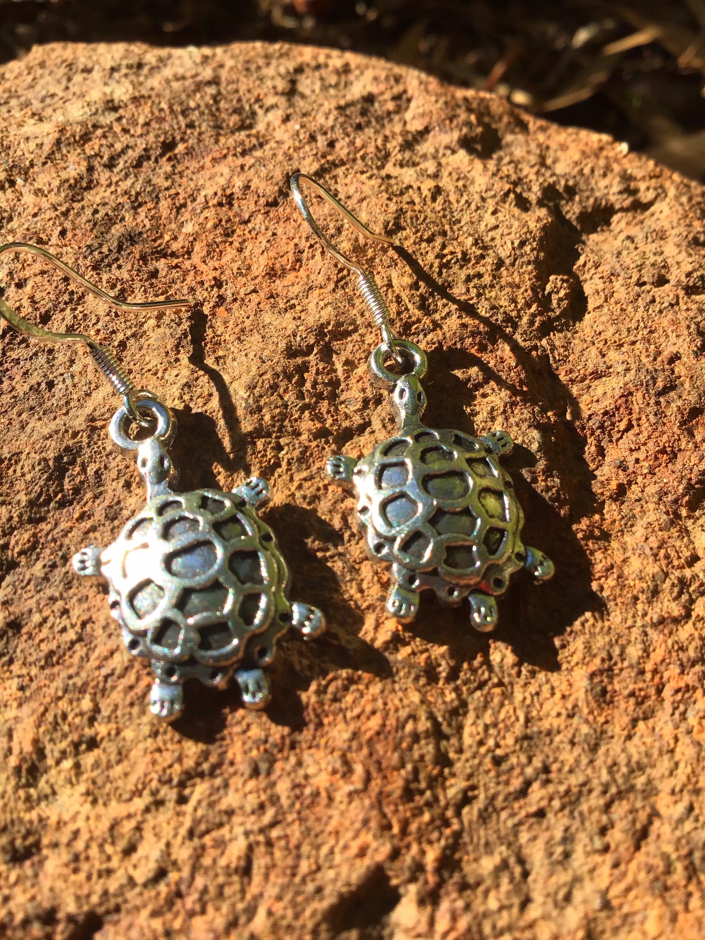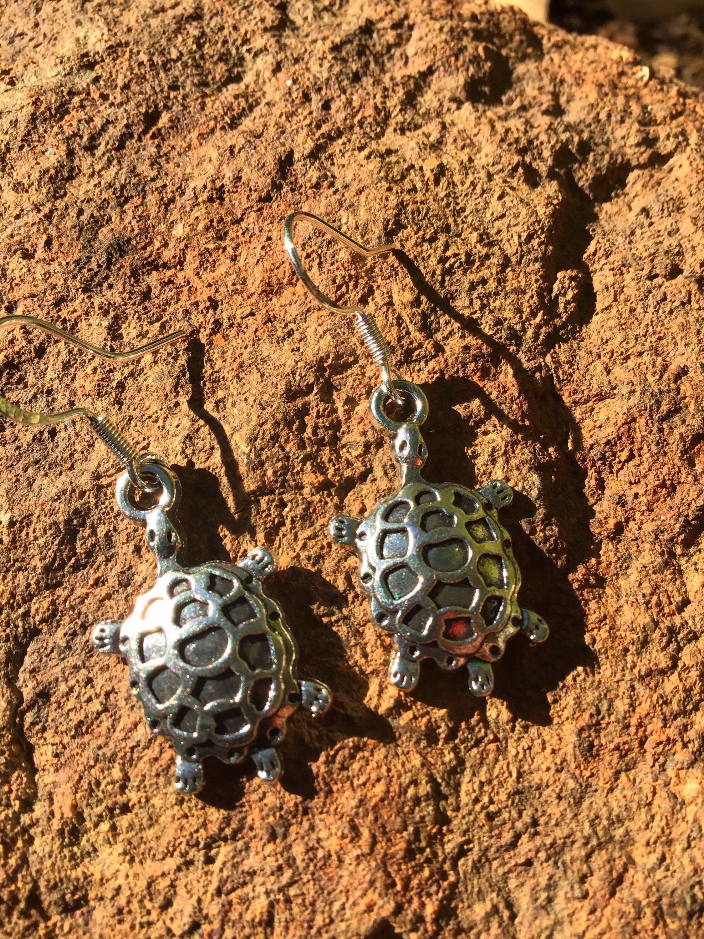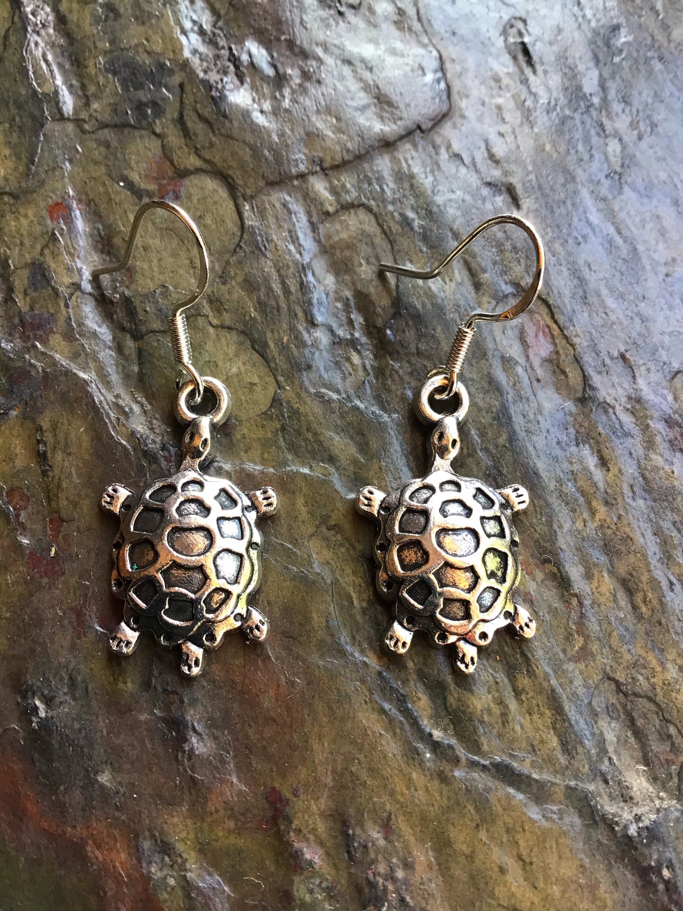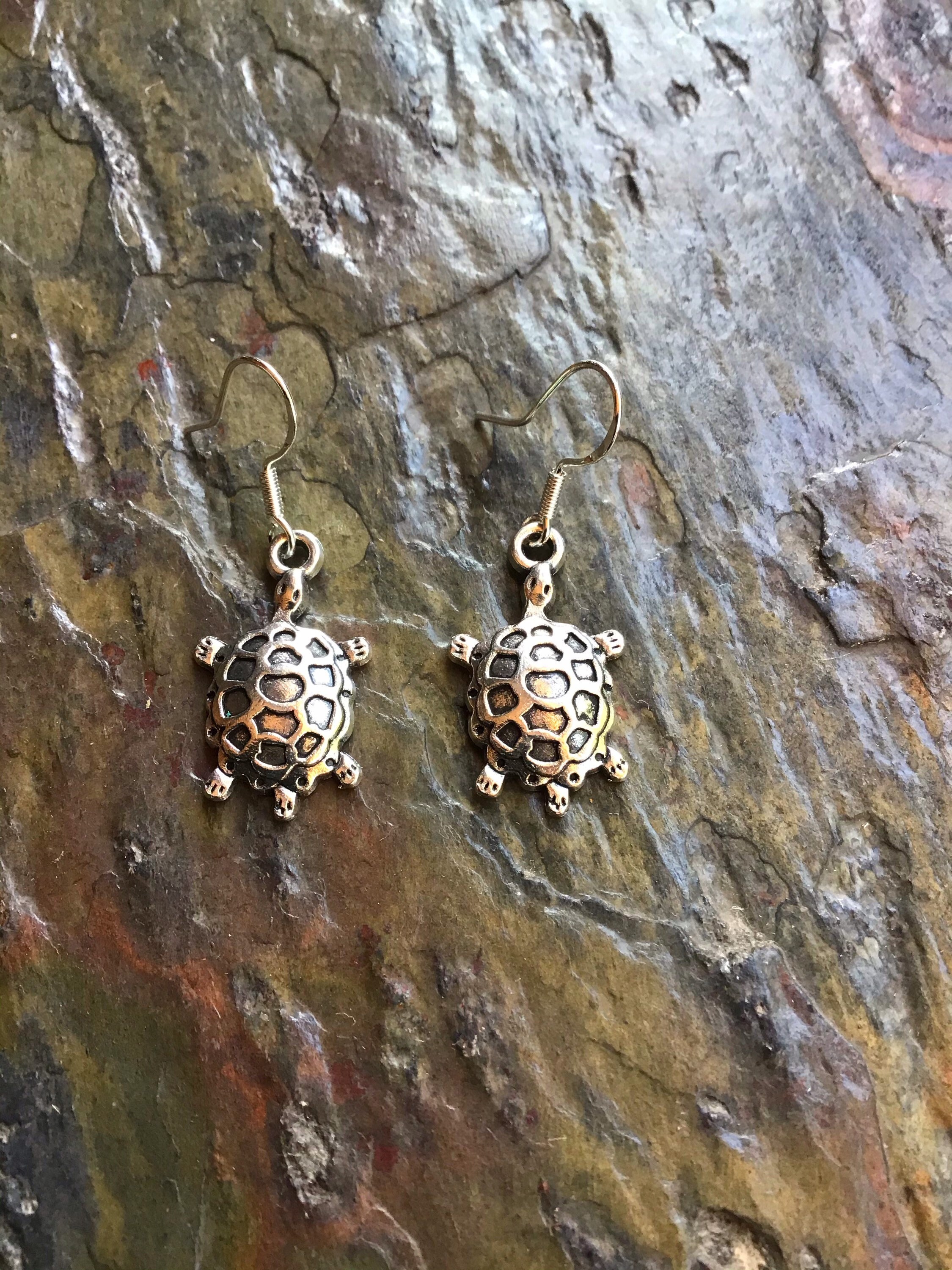 Earring hooks are sterling silver, turtle charms are not sterling silver